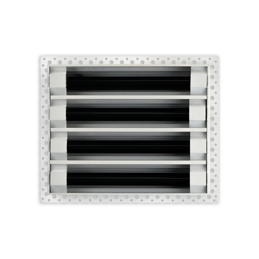 - Texas Buildmart offers Mud In Air Vent Covers also known as Drywall Mud-in White Air Vents. This Mud In Air Vent Cover shoots a 90-degree spread with option to adjust to one side or the other. These have decorative directional dampers. Modern, crisp, clean lines and architecturally appealing. Solid extruded aluminum profile, expertly welded, grinded, and sanded, with reinforcement brackets on the back and a uniform coat of electrostatic paint for a sleek, modern finish and easy maintenance. This white air vent register can be used as a supply air vent cover for ceilings and walls and as a return air vent cover register but looks like a Luxury Drywall Mud-in Vent Cover. If our Mud In Air Vent Cover is used as a Return air vent cover, please make sure the air vent cover is placed in the full open position or remove the directional dampers. Update your Ceiling and Wall Vents with our Mud In Air Vent Covers and it will update the entire look of your Home or Office Space. Rejillas para aire acondicionado de casa blanco. We make all sizes from 6x4 to 30x24 Modern Mud Air Vent Covers for the Modern Day Home. *This is a Design and Utility Patent Pending Product*