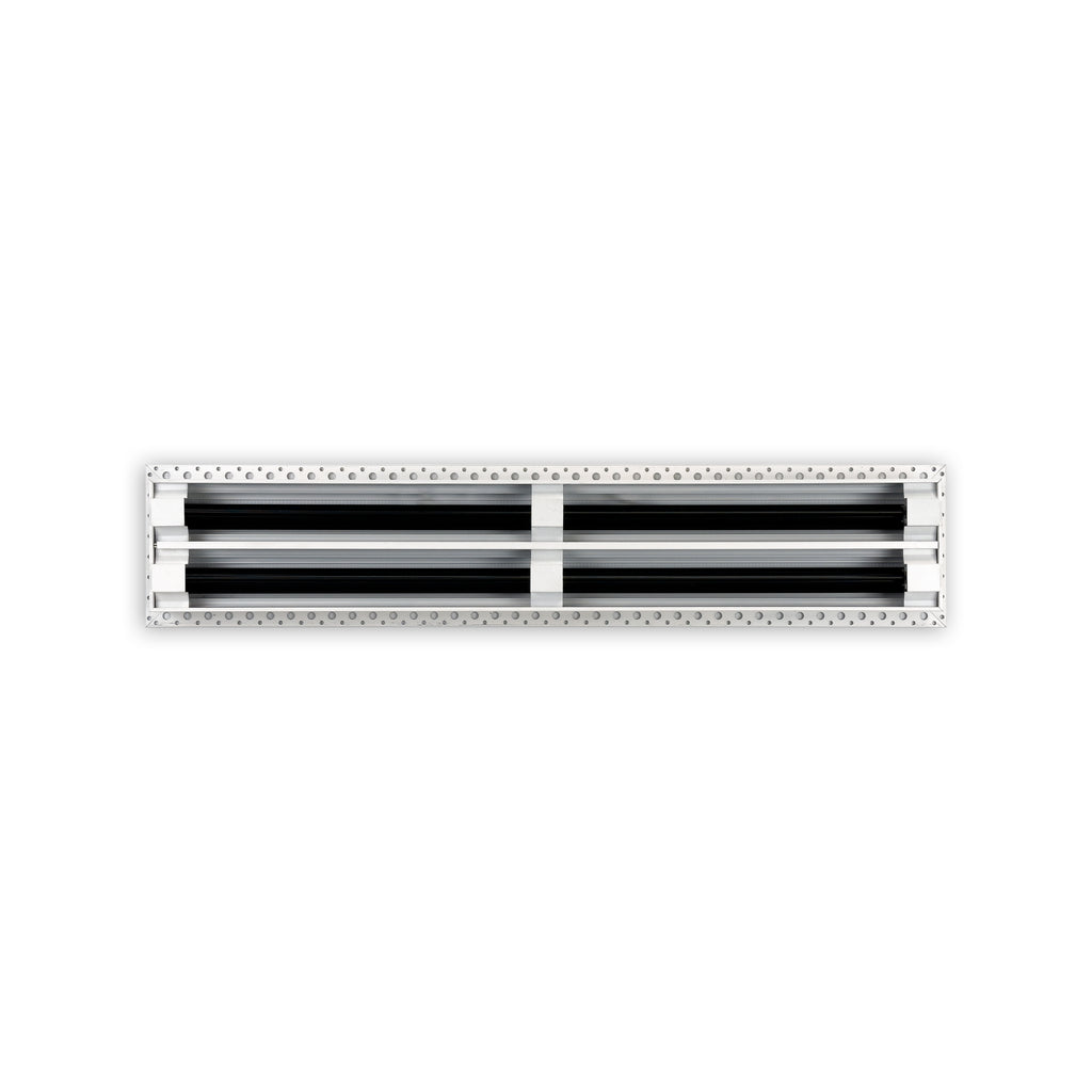 Linear slot diffusers are a type of air diffuser used in heating, ventilation, and air conditioning (HVAC) systems. They are designed to distribute conditioned air evenly throughout a room or space. Linear slot diffusers typically consist of a long, narrow slot or opening that runs along the length of the diffuser. Air is distributed through this slot, and then spread out into the room by a series of slots which each contain deflectors (dampers) that are located within the diffuser slots. Linear slot diffusers are often used in commercial and industrial buildings, such as office buildings, schools, and hospitals, because of their ability to distribute large amounts of air over a wide area. They are also often used in buildings with high ceilings, such as airports, atriums and shopping centers. Linear slot diffusers also come in a variety of sizes and designs to match the specific needs of a building. They can be ceiling-mounted, wall-mounted, or floor-mounted and are made of 100% aluminum. Some can have adjustable slots to control the airflow direction or be equipped with deflectors (dampers) to control the airflow volume. They are commonly used in commercial and industrial buildings, as well as buildings with high ceilings. Ours come in a variety of sizes from 12" to 72” in 1-2-3 Slot Linear Diffusers.