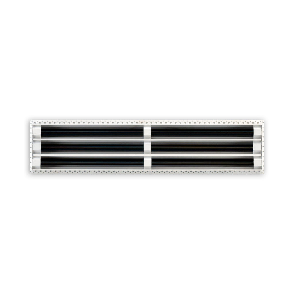Linear slot diffusers are a type of air diffuser used in heating, ventilation, and air conditioning (HVAC) systems. They are designed to distribute conditioned air evenly throughout a room or space. Linear slot diffusers typically consist of a long, narrow slot or opening that runs along the length of the diffuser. Air is distributed through this slot, and then spread out into the room by a series of slots which each contain deflectors (dampers) that are located within the diffuser slots. Linear slot diffusers are often used in commercial and industrial buildings, such as office buildings, schools, and hospitals, because of their ability to distribute large amounts of air over a wide area. They are also often used in buildings with high ceilings, such as airports, atriums and shopping centers. Linear slot diffusers also come in a variety of sizes and designs to match the specific needs of a building. They can be ceiling-mounted, wall-mounted, or floor-mounted and are made of 100% aluminum. Some can have adjustable slots to control the airflow direction or be equipped with deflectors (dampers) to control the airflow volume. They are commonly used in commercial and industrial buildings, as well as buildings with high ceilings. Ours come in a variety of sizes from 12" to 72” in 1-2-3 Slot Linear Diffusers.