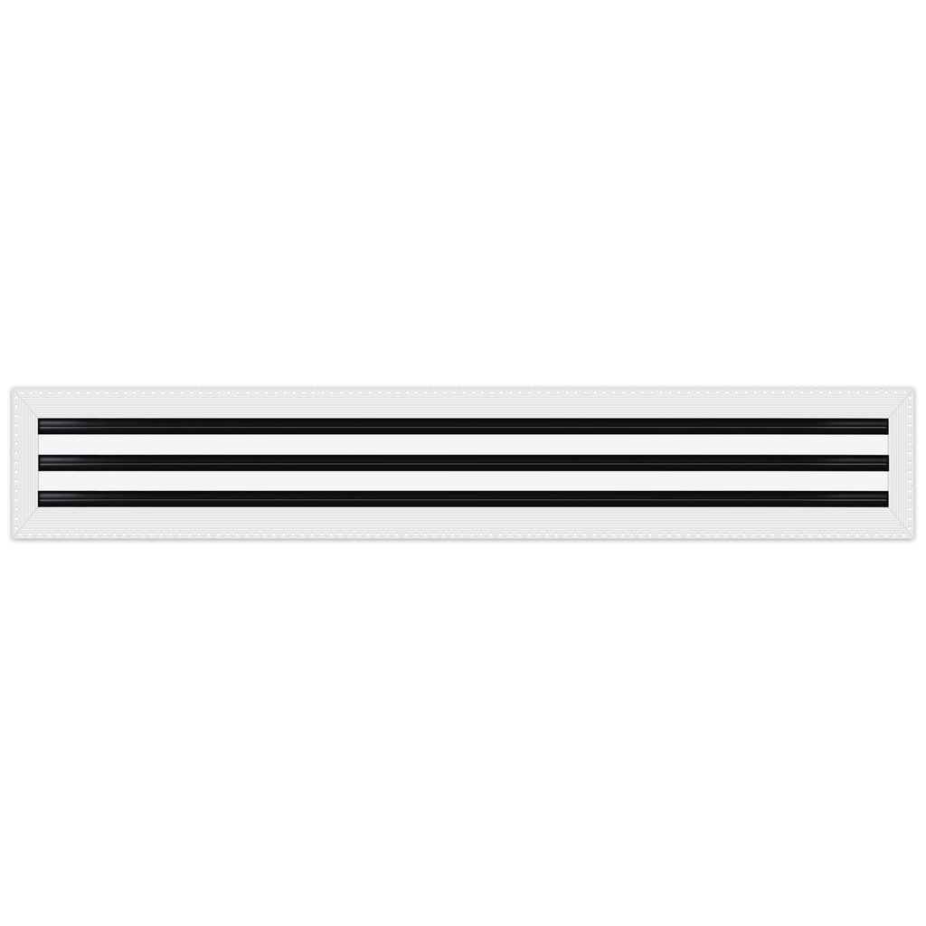 Linear slot diffusers are a type of air diffuser used in heating, ventilation, and air conditioning (HVAC) systems. They are designed to distribute conditioned air evenly throughout a room or space. Linear slot diffusers typically consist of a long, narrow slot or opening that runs along the length of the diffuser. Air is distributed through this slot, and then spread out into the room by a series of slots which each contain deflectors (dampers) that are located within the diffuser slots. Linear slot diffusers are often used in commercial and industrial buildings, such as office buildings, schools, and hospitals, because of their ability to distribute large amounts of air over a wide area. They are also often used in buildings with high ceilings, such as airports, atriums and shopping centers. Linear slot diffusers also come in a variety of sizes and designs to match the specific needs of a building. They can be ceiling-mounted, wall-mounted, or floor-mounted and are made of 100% aluminum. Some can have adjustable slots to control the airflow direction or be equipped with deflectors (dampers) to control the airflow volume. They are commonly used in commercial and industrial buildings, as well as buildings with high ceilings. Ours come in a variety of sizes from 12" to 72” in 1-2-3 Slot Linear Diffusers.