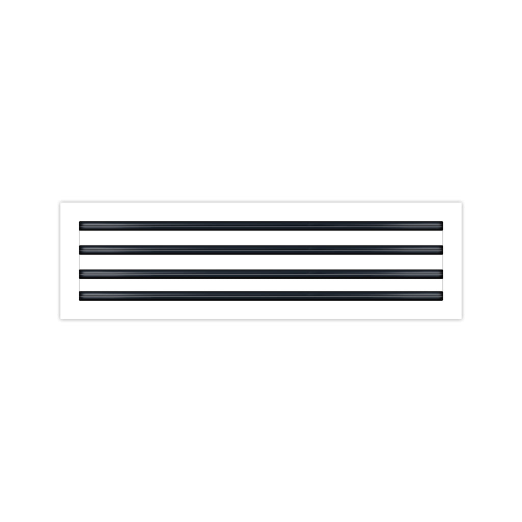 - Texas Buildmart offers Modern AC Vent Covers also known as High Quality Standard Linear Slot Diffusers. This Modern AC Vent Cover shoots a 90-degree spread with option to adjust to one side or the other. These have decorative directional dampers. Modern, crisp, clean lines and architecturally appealing. Solid extruded aluminum profile with welding - Electrostatic Paint which makes it easy to clean because of it's dust-resistance. This white air vent register can be used as a supply air vent cover for ceilings, walls, and floors. This vent cover was designed to be decorative and not structural. You can use this as a floor vent cover, but it is not designed to support weight, adding any type of weight is not recommended. This vent can be used as a return air vent cover as well. This register is not only a vent cover, but it looks like a Modern Contemporary looking fixture. If our Modern AC Vent Cover is used as a Return air vent cover, please make sure the air vent cover is placed in the full open position or remove the directional dampers. Update your Ceilings, Walls & Floor Vents with our Modern AC Vent Covers and it will update the entire look of your Home or Office Space. Rejillas para aire acondicionado de casa blanco. We make all sizes from 6x4 to 30x24 Standard Sized Modern AC Vent Covers for the Modern Day Home. *This is a Design and Utility Patent Pending Product*