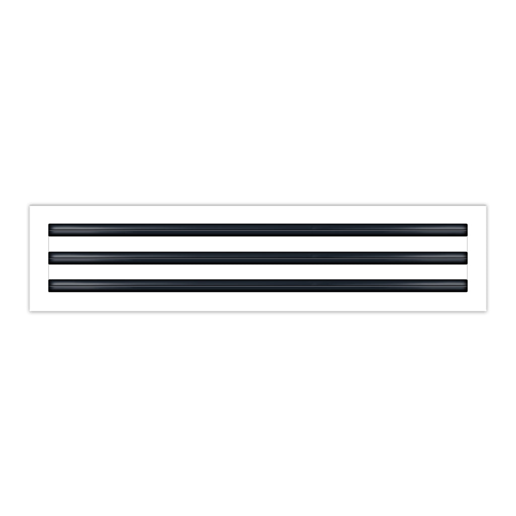 • Texas Buildmart offers Modern AC Vent Covers also known as High Quality Standard Linear Slot Diffusers. This Modern AC Vent Cover shoots a 90-degree spread with option to adjust to one side or the other. These have decorative directional dampers. Modern, crisp, clean lines and architecturally appealing. Solid extruded aluminum profile with welding - Electrostatic Paint which makes it easy to clean because of it's dust-resistance. This white air vent register can be used as a supply air vent cover for ceilings, walls, and floors. This vent cover was designed to be decorative and not structural. You can use this as a floor vent cover, but it is not designed to support weight, adding any type of weight is not recommended. This vent can be used as a return air vent cover as well. This register is not only a vent cover, but it looks like a Modern Contemporary looking fixture. If our Modern AC Vent Cover is used as a Return air vent cover, please make sure the air vent cover is placed in the full open position or remove the directional dampers. Update your Ceilings, Walls & Floor Vents with our Modern AC Vent Covers and it will update the entire look of your Home or Office Space. Rejillas para aire acondicionado de casa blanco. We make all sizes from 6x4 to 30x24 Standard Sized Modern AC Vent Covers for the Modern Day Home. *This is a Design and Utility Patent Pending Product*